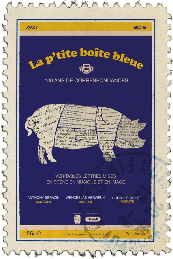 Le pâté le plus populaire de Bretagne fête ses 100 ans ! Quand vous en parlez autour de vous, chacun a une anecdote à raconter sur le pâté Hénaff. Certains ont même écrit directement à Hénaff au fur et à mesure des années pour déclarer leurs flammes au pâté ! Le spectacle présenté lors de cette soirée est basé sur une lecture de courriers savoureux conservés par Hénaff.